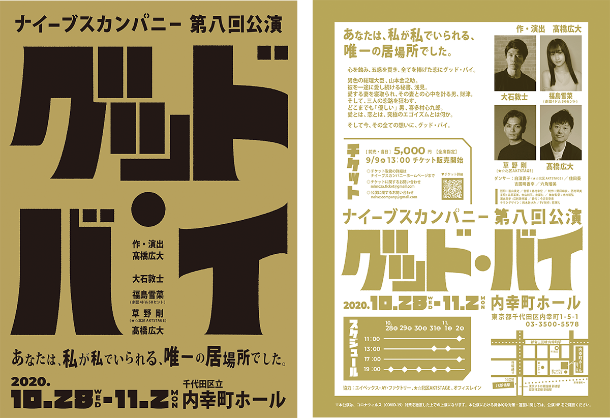 10月28日(水)から内幸町ホールにて公演予定でした、『グッド・バイ』につきまして、
